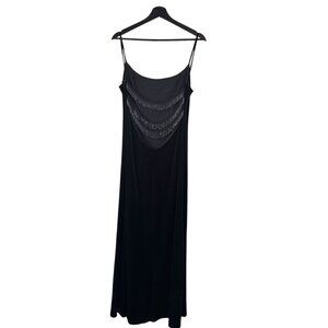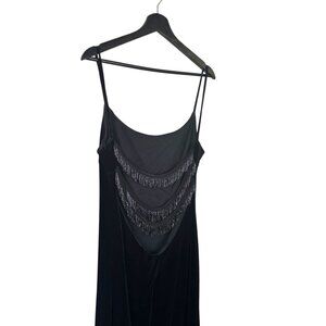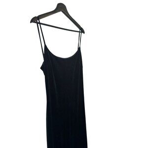 Vintage 90s Black Velvet Full Length Spaghetti Strap Formal Dress Large