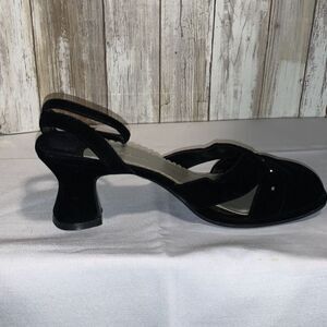 Vintage 90’s Black Velvet Square Toe Ankle Strap Chunky Heels Size 9