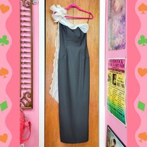 Vintage 90s Black & White Ruffled One Shoulder Gown