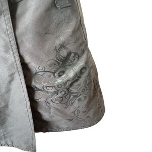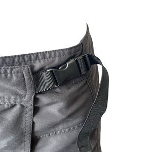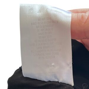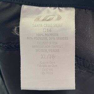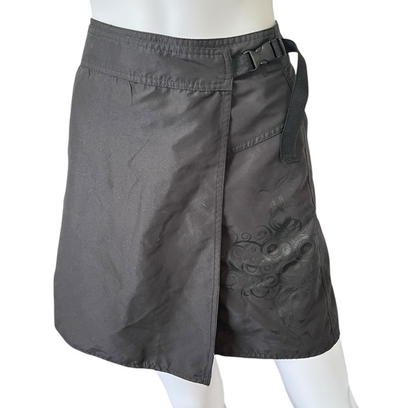 Lightweight black skirt with a black design on one side. Buckles closed. Size XL; see measurements for best fit.