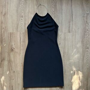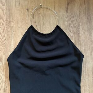 Vintage 90s perfect little black halter dress. Wire necklace attached to function as the halter top. Very easy to put on yourself. Stretchy and form fitting, unlined, hugs your curves. So many ways to style this beauty!