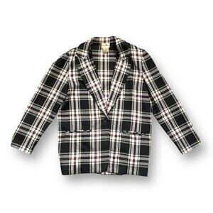 Vintage 90s Blazer Jacket Oversized Black Tan Plaid One Button Preppy Small