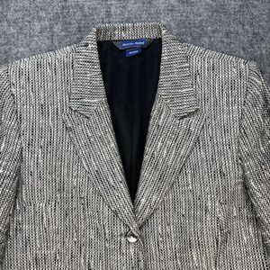 Vintage 90s Blazer Women 10 Black White Tweed Linen Blend Made in USA