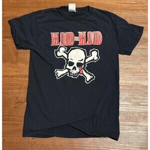 Authentic vintage 1990s Blood for Blood band t-shirt featuring skull & crossbones graphic with Blood for Blood logo.