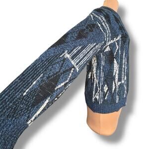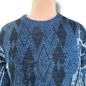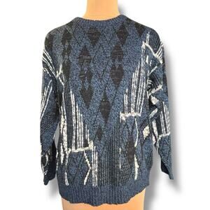 Vintage 90s Blue Black White Abstract Argyle Knit Crewneck Sweater Large Unisex