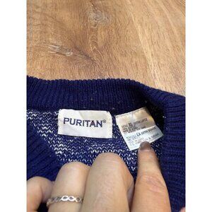 Vintage 90s Blue Fair Isle Reindeer Pattern Sweater XL