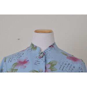 Vintage 90s Blue Floral Print Blouse by AKS Amy K Su | size S
