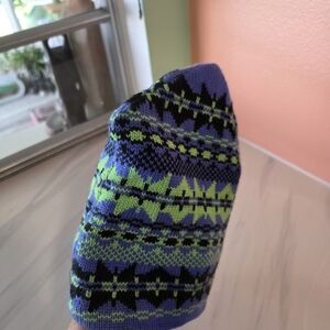 Vintage 90s Blue Green Meister Ski Beanie Boho Apres Ski Winter Outdoor