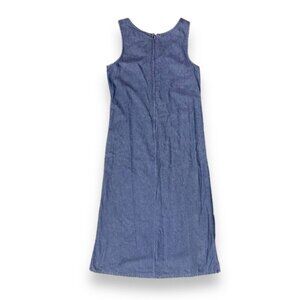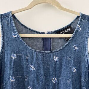 Vintage 90s Blue Jean Maxi Dress Embroidered Sleeveless Denim Jumper Size Medium