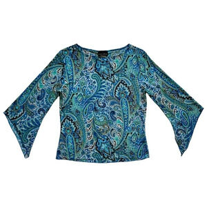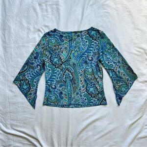Vintage 90’s Blue Paisley Print 3/4 Sleeves Blouse
