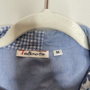 Vintage 90s Blue Plaid Floral Patchwork Button Down Blouse Size Medium