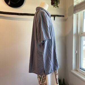 Vintage 90s Blue Textured Silk Button Front Short Sleeve Oversized Shirt Size XL