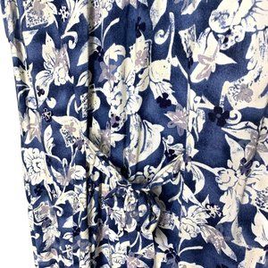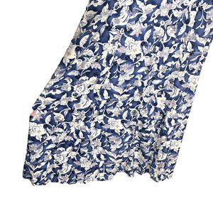 Vintage 90s Blue White Sleeveless Flora Collared Button Up Full Length Dress Large