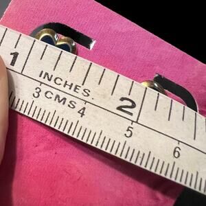The earrings appear to be in good condition, with the enamel intact and the metal maintaining a shiny finish. The post backings seem secure and comfortable to wear.