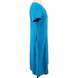 Vintage 90s Boho Button Front Cotton Midi Dress Blue Pockets Size 12