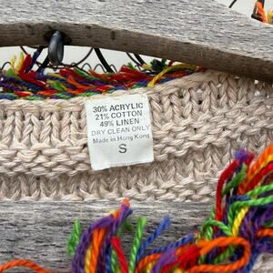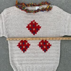 Vintage 90s Boho Fringe Bead Hippie Square Argyle Short Sleeve Sweater SMALL