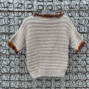 Vintage 90s Boho Fringe Bead Hippie Square Argyle Short Sleeve Sweater