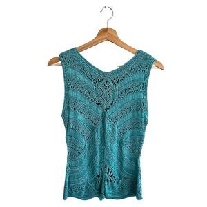 Vintage Bandolino 90s Boho Hippie Crochet Top Festival Y2K Coastal Beachy Coachella