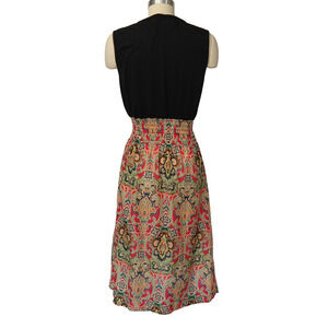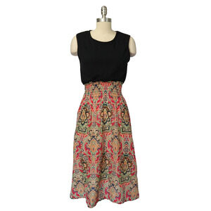 Vintage 90s Boho Print Midi Dress Size M The Paragon Catalog Black Sleeveless