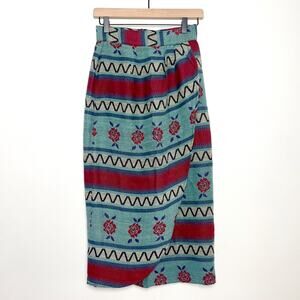 Vintage 90s Boho Southwest Western Floral Tapestry Cowgirl Wrap Skirt Size XS