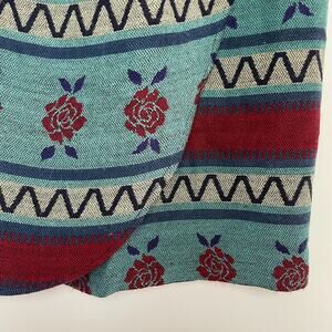 Vintage 90s woven tapestry-style faux wrap skirt in a bold Southwest floral pattern. This piece blends rustic ranchcore charm with classic boho western vibes — perfect for styling with boots, a chunky belt, and a crisp button-down for that modern cowgirl look.