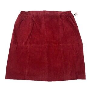 Vintage 90s womens suede leather skirt in a rich red color. Classic high-waisted style with knee-length cut. Soft genuine suede with a structured yet timeless look perfect for pairing with boots, blouses, or sweaters. A great wardrobe staple with retro vibes.