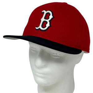 Vintage 90s Boston Red Sox Hat Baseball Cap MLB New Era 5950 50Fifty Red 6 Panel Wool Made In USA Fitted 7 1/2