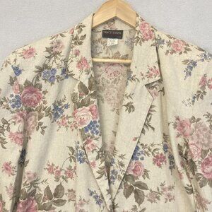 Vintage Tracy Evans Blazer Womens Medium Floral Boxy Linen Cotton Jacket USA 90s