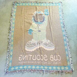 Vintage 90s Boy Scouts of America Garfield Afghan Throw Blanket 68x52 Cub Scouts