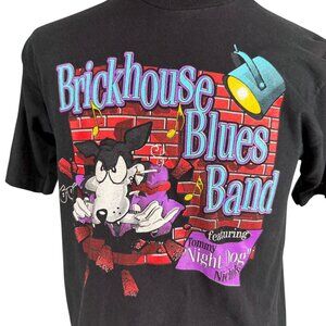 Vintage 90s Brickhouse Blues Band Black Graphic T-Shirt M Fruit Of The Loom
