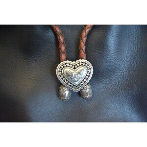 This vintage-style Brighton bag showcases premium leather and intricate braided details. The heart charm and silver-tone accents evoke timeless elegance.