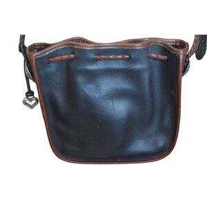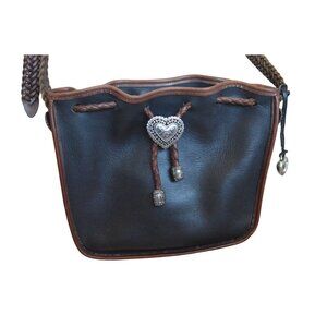 Vintage 90s Brighton Braided Leather Crossbody Drawstring Bag Silver Heart Charm