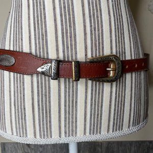 Vintage 90s Brighton Brown Leather Western Belt Silver Plated Buckle Size 32