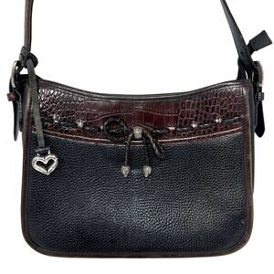 Vintage 90s Brighton Leather Hardshell Bag Reptile Heart Shoulder Purse Black Brown