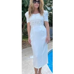 Vintage 90's Brioche Off White Curve Flattering Midi Dress
