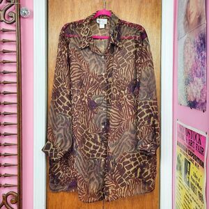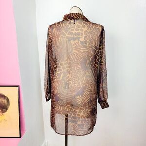Vintage 90s Brown Animal Print Sheer Tunic Blouse