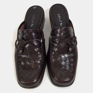 Features braided leather, bow decorations, silver hardware, and small heel. These are such a cute and classic pair of shoes! They are super comfy and easy to style. These shoes are in excellent condition and are great quality!