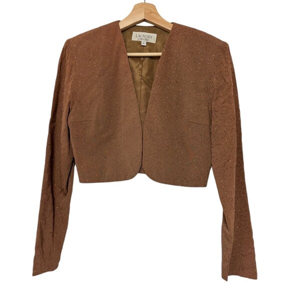 Vintage 90's Brown Glitter Sparkle Crop Jacket Blazer LAUNDRY by SHELLI SEGAL