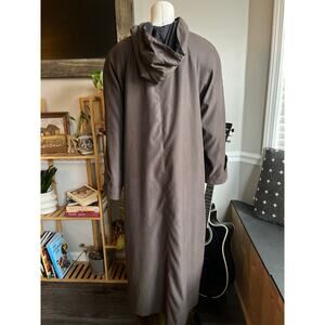 Vintage 90s Brown Heavy Lined Hooded Button Front Trench Coat Size Medium