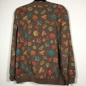 Vintage 90s Brown Leaf Novelty Print Cottagecore Goblincore Cozy Autumn Jacket M