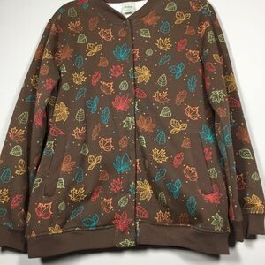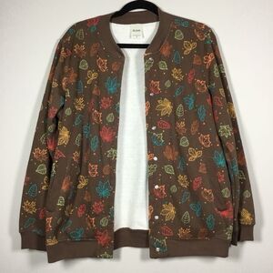 Blair VTG 1990s Cabincore Fall Cozycore Forest Fairy Hobbitcore Aesthetic Brown Multicolor Leaves Print Fleece Lined Jacket