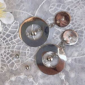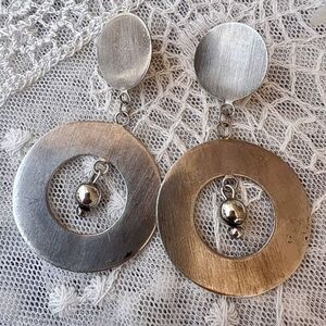 Vintage 90's Statement earrings. Brushed silver finish on the outside, smooth silver on the back. May have an anti-tarnish coating.