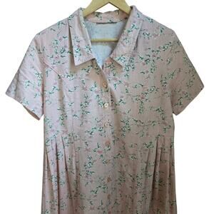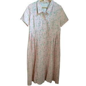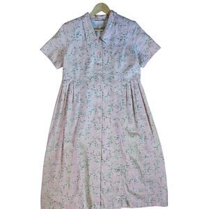 Vintage 90s Bryn Connelly Pink Floral Button-Up Dress 10P Romantic Boho Cottage