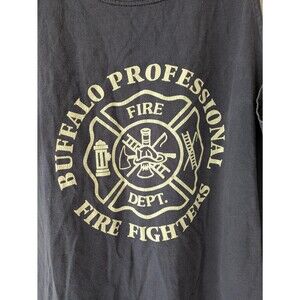Vintage dark blue or navy tank top from the Buffalo, NY Professional Fire Fighters. Great vintage condition only some minor age appropriate wear to the front graphic.