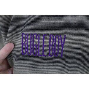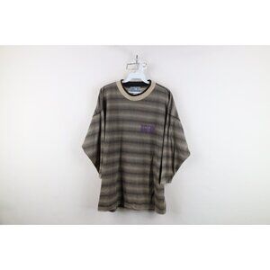Vintage 90s Bugle Boy Mens Large Spell Out Striped Baggy Fit 3/4 Sleeve T-Shirt
