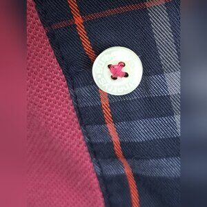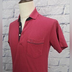 Vintage 90s Burberry Men's Polo Shirt Red Equestrian Knight Nova Check Sz Small