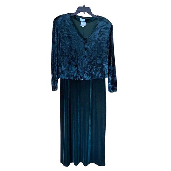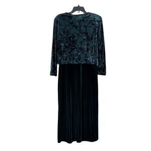 Vintage 90s Burnout Velvet Maxi Dress w/ Jacket Green 10P Holiday Party Y2K Goth