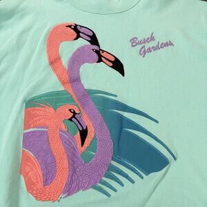Vintage Busch Gardens Sweatshirt Mens Large Aqua Flamingo Pullover Crewneck 90s