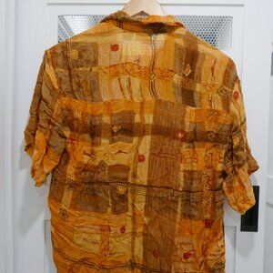 Vintage 90s Button Up Shirt Abstract Print Glass Beads Embroidery Safari Sheer