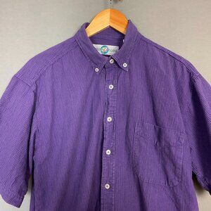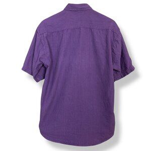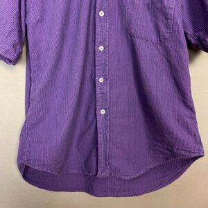 Vintage 90s Button-Down Shirt Purple Stripes Men Size Medium Short Sleeve Casual